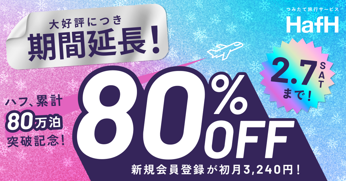 僕も実際に使っていて、このHafHのおかげで泊まったことのないホテルに宿泊することができました。